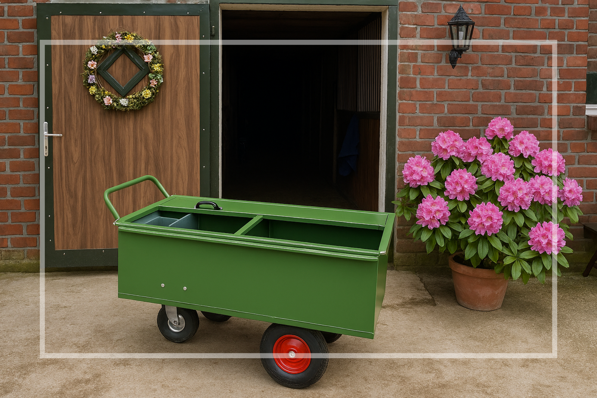 Der Eingangsbereich eines Stalls wird oft unterschätzt. Dabei ist er der erste Eindruck, den Besucher, Reiter und Helfer bekommen. Eine kleine Pflanzenecke bringt Farbe, Leben und echte Frühlingsstimmung in den Außenbereich.