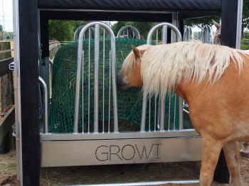Pferdegerecht und wirtschaftlich - so soll die Pferdehaltung aus Sicht eines Betriebsleiters sein. Aktivställe mit klar durchdachtem Bewegungs- und Fütterungsmanagement spielen hierbei eine immer wichtigere Rolle. Heuraufen sind ideal für den kontinuierlichen Futterzugang bei Offenstall- und Weidehaltung. Anders als in der Natur, bewegen sich die Pferde bei der Futteraufnahme nicht fort. Um den Pferden einen Anreiz zur Bewegung zu geben, können automatisierte Fütterungssysteme, wie die neue Growi®-Futterraufe mit der HUESKER-Fütterungssteuerung eingesetzt werden.