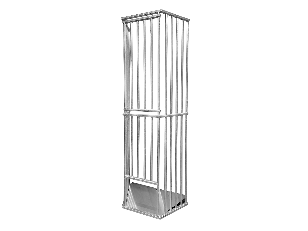 Diese feuerverzinkte Heuraufe kann als Wand- oder Eckraufe verwendet werden. Im Bodenbereich befindet sich eine schräggestellte Bodenplatte, so dass Heureste gut nachrutschen können. Zusätzlich verfügt die Version Ulina über eine Freessluke im vorderen, unteren Bereich. Die Heuraufe lässt sich sehr leicht von vorn befüllen, ihr lichter Gitterabstand beträgt ca. 6 cm. Sie ist ca. 80 cm breit, 200 cm hoch und 40 cm tief.