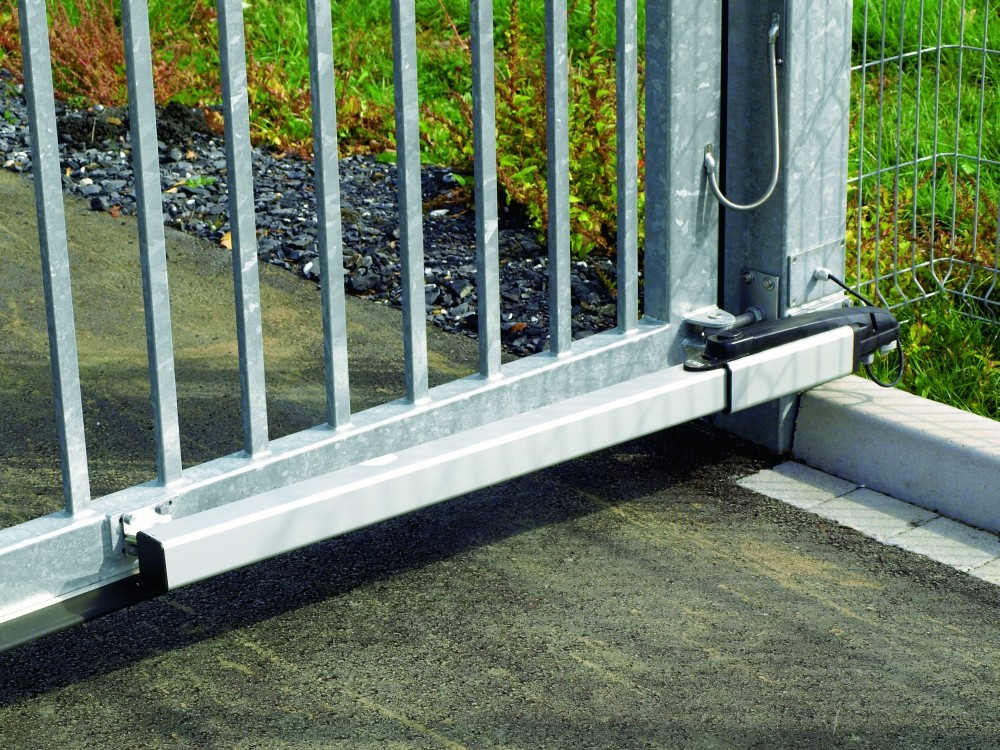 Die Hydraulik-Linearantriebe sind speziell für den Einsatz bei großen Toren und für industrielle Ansprüche konstruiert. Die im Unterholm des Torflügels integrierte Lineareinheit sorgt für eine ruhige und kraftvolle Bewegung des Tores und ist für eine Torflügelgröße bis zu 8000 mm geeignet. In der Stellung "Zu" werden die Torflügel automatisch mechanisch verriegelt, so dass keine zusätzliche Bodenhülse in der Mitte notwendig ist. Die Hydraulikaggregate und die Steuerung werden bedienerfreundlich im Pfosten des Tores montiert.