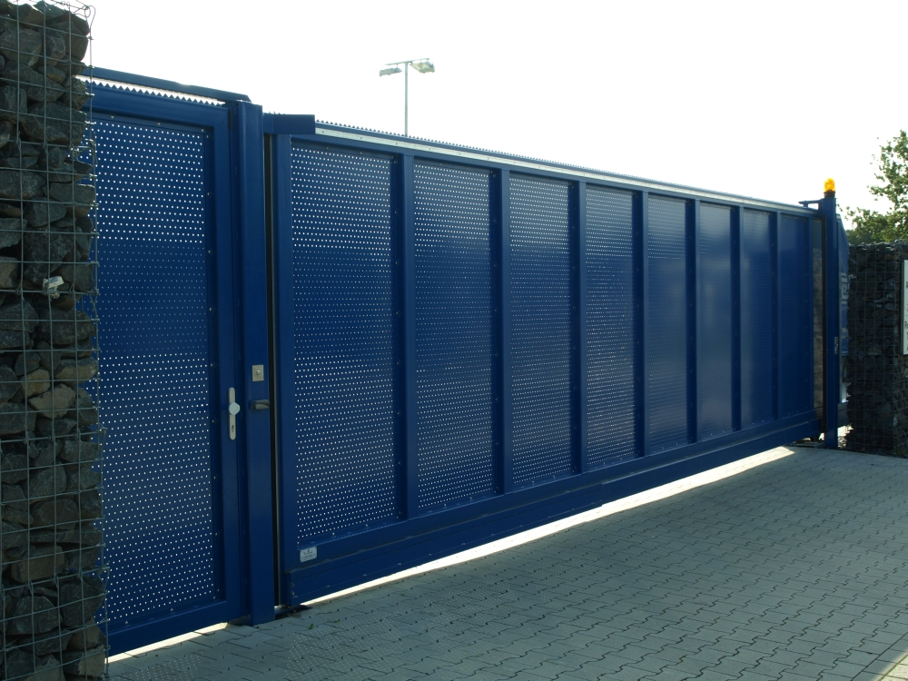 Unser freitragendes Schiebetor PFS 160 ist die ideale Lösung zum Schutz von Durchfahrten mit einer Breite von bis zu 10000 mm. Die Tore werden präzise nach Ihren Anforderungen hergestellt und bieten dadurch einen passgenauen und verlässlichen Objektschutz. Die Torflügel sind wahlweise mit Stabfüllung oder Gittermattenfüllung erhältlich und gewährleisten in Verbindung mit farbiger Pulverbeschichtung nicht nur die Absicherung Ihres Geländes, sondern werten es auch optisch auf. Durch die Verwendung hochwertiger Materialien und Feuerverzinkung steht einem langjährigen und wartungsarmen Einsatz nichts im Wege.