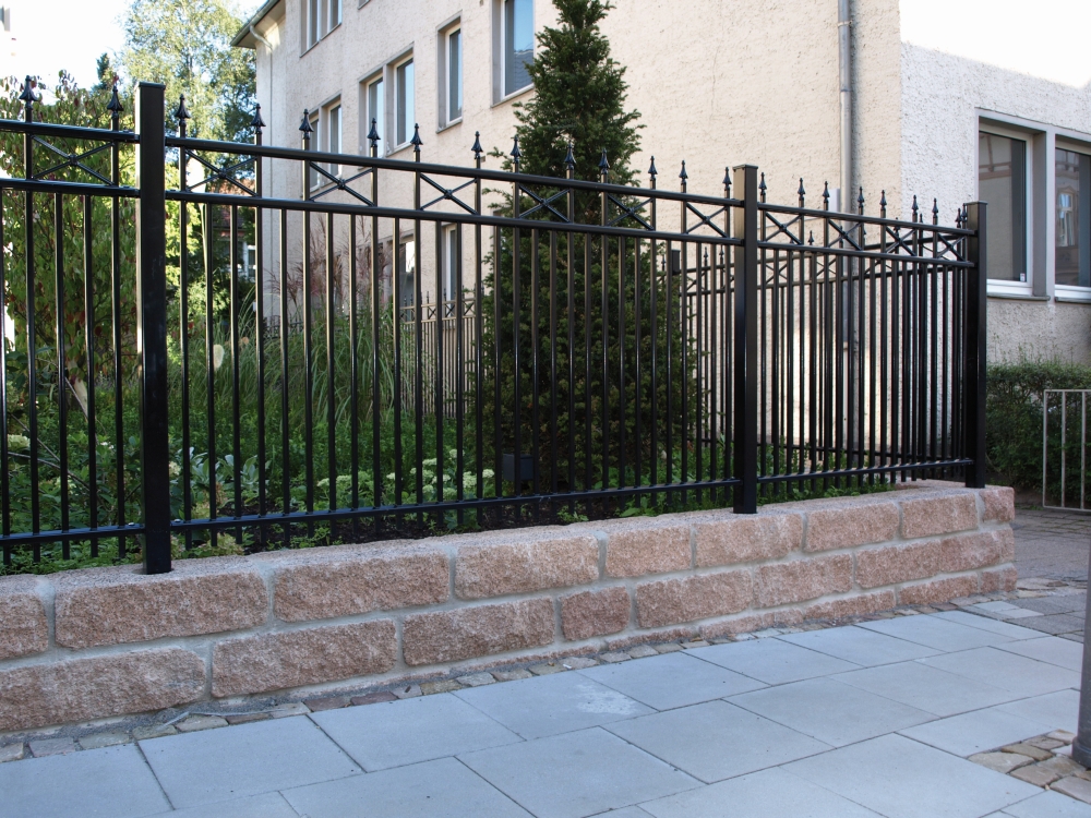 Die Modellvariante London besteht aus drei waagerechten C-Profilen, wobei hier die Lücke zwischen den oberen C-Profilen mit Zierkreuzen geschlossen wird. Die senkrechten Quadratrohrüberstände werden mit Zierspitzen geschlossen. Sie sehen: London hat die besondere Lücke!