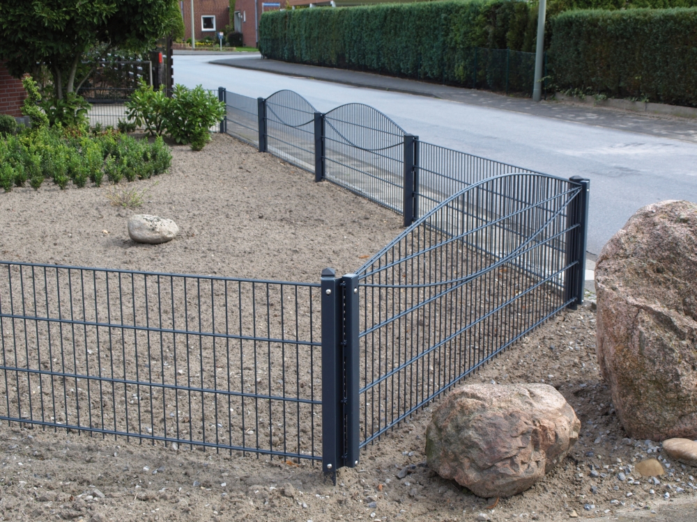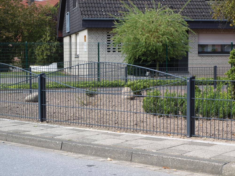 Der Growi® Zierzaun Donau ist facettenreich und wird aus Doppelstabmatten 8 / 6 / 8 mm in Ellipsenform produziert. Das Modell Donau fällt durch seine klare Linienführung auf und wirkt optimal im Zusammenspiel mit geraden Doppelstabmatten des Typs Wapel. Growi® Zierzäune werden auf Maß gefertigt, dadurch verleihen wir Ihrer Zaunanlage ein optimales Erscheinungsbild.